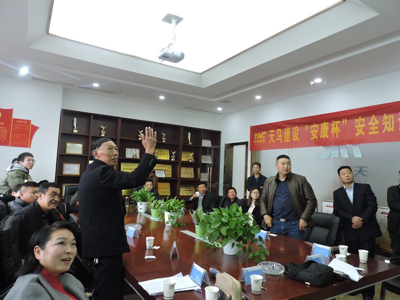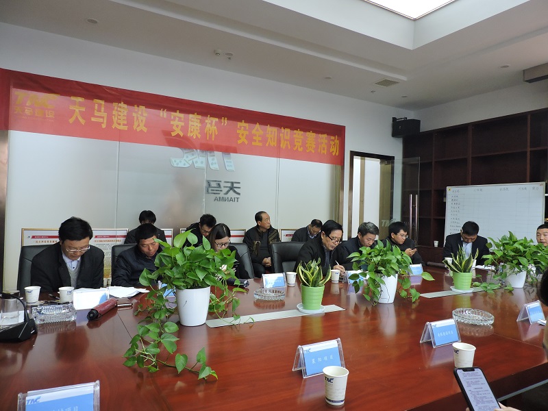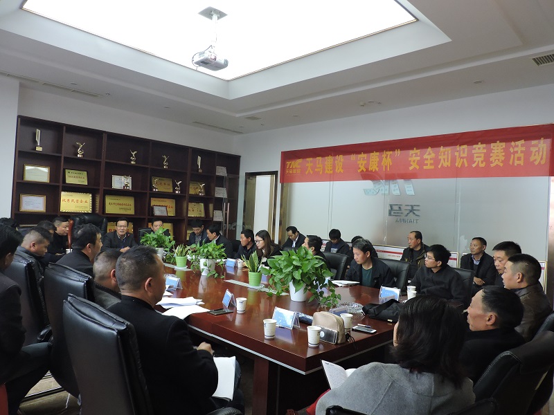 11月16日上午,天馬建設(shè)2018年“安康杯”安全知識競賽在公司會議室順利召開。此次競賽由集團安全生產(chǎn)部主辦,綜合部協(xié)辦,旨在深入開展以“落實全員安全責(zé)任,促進企業(yè)安全發(fā)展”為主題的安康杯活動,不斷加強全體職工的安全管理與監(jiān)督工作。集團總經(jīng)理高昌盛、總工程師余勝利出席了本次競賽并作出動員,來自各在建項目部的14支代表隊,共計40余名員工參加了競賽。