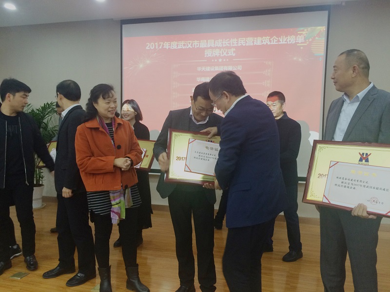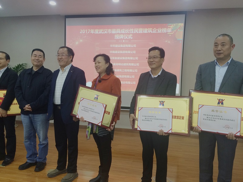 11月6日,武漢建筑業(yè)協(xié)會召開“促進武漢市建筑業(yè)高質(zhì)量發(fā)展座談會(第三次)暨最具成長性民營建筑企業(yè)授牌儀式”。會上發(fā)布了“2017年度武漢市最具成長性民營建筑企業(yè)”榜單,共有21家企業(yè)上榜,天馬建設(shè)集團位列其中。