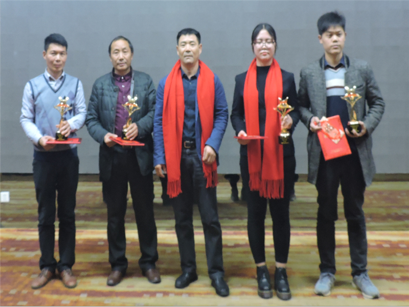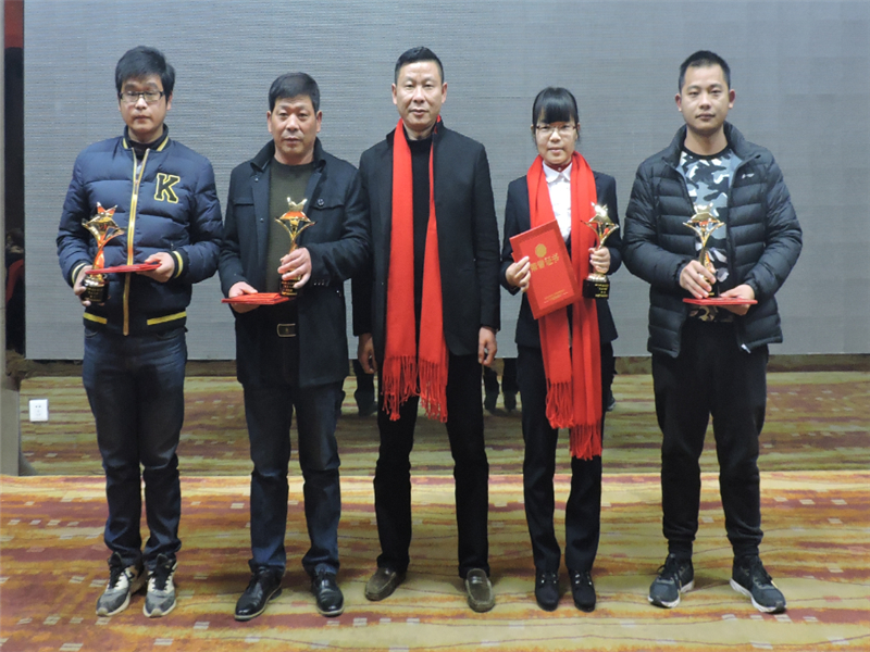 天馬建設(shè)集團(tuán)“2016年度優(yōu)秀員工——天馬之星獎(jiǎng)”:“鸚鵡村還建地塊項(xiàng)目”工長(zhǎng) 程義;“香奈·天鵝湖A區(qū)一期項(xiàng)目”安全員 劉寶望;“天馬建設(shè)集團(tuán)”財(cái)務(wù)部 何歡;“解放路黨員群眾服務(wù)中心項(xiàng)目”項(xiàng)目經(jīng)理 段克勇。頒獎(jiǎng)人:集團(tuán)總工程師余勝利。