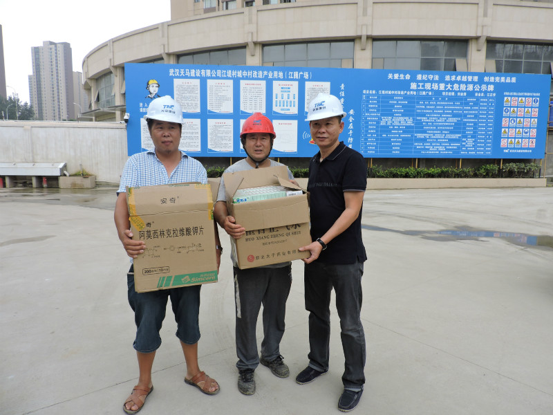 8月2日至5日,天馬建設(shè)集團(tuán)總工余勝利帶領(lǐng)辦公室、工程部、策劃部一行人,冒著高溫酷暑,對集團(tuán)各項(xiàng)目工地開展了“夏日送清涼”慰問活動(dòng),給一線工人們送去了綠豆、人丹、藿香正氣水等清涼防暑用品,讓一線工人們在酷暑中感受到了一絲舒心的涼意。