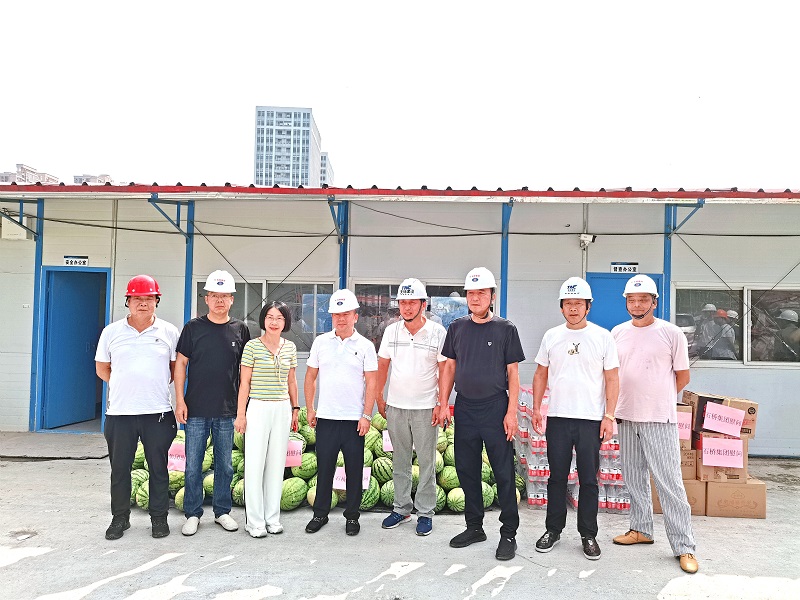 驕陽似火,熱浪滾滾,給在戶外工作的項目施工人員帶來了嚴峻“烤”驗。為做好暑期施工安全生產(chǎn)工作,確保項目施工人員安全度夏,7月30日,在集團監(jiān)事會主席、工程項目總包負責人張幼明的陪同下,武漢石橋集團有限公司董事長李鴻斌、紀委書記姚海瓊、建設單位項目負責人胡元杰等一行領導來到集團在建工地(石橋村城中村改造還建H4+TJ1西地塊)項目部開展了“夏日送清涼”活動,為堅守在高溫下的一線工友送去了“清涼”和建設方的關懷。