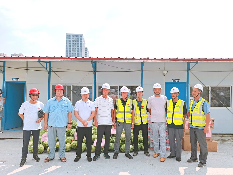 入夏以來,隨著氣溫的不斷升高,工人露天施工作業(yè),體能消耗非常大,為了切實做好一線工人的防暑降溫工作,武漢石橋集團為項目部送來了3000斤西瓜、20箱礦泉水、綠豆、冰糖、蚊香、花露水等防暑降溫防蚊用品,為施工一線送清涼、送安全、送健康。把清涼送到了一線工作區(qū)域,把關懷送到了工人心坎。