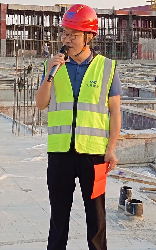 在封頂儀式現(xiàn)場(chǎng),總經(jīng)理高昌盛致辭表示,今天是中華人民共和國成立73周年,在這個(gè)大喜的日子里,我們迎來了中新開維現(xiàn)代牧業(yè)二號(hào)生產(chǎn)大樓的喜封金頂,這是天馬建設(shè)集團(tuán)有限公司與湖北中新開維現(xiàn)代牧業(yè)有限公司長(zhǎng)期合作的結(jié)晶。自項(xiàng)目建設(shè)以來,我們嚴(yán)格做到了四個(gè)確保:保質(zhì)量、保安全、保進(jìn)度、保項(xiàng)目的和諧安定,如期完成建設(shè)任務(wù)。項(xiàng)目的順利封頂,標(biāo)志著工程建設(shè)取得了階段性的勝利,也為下一步工作開創(chuàng)了良好局面,我們將繼續(xù)秉承“客戶至上、質(zhì)量第一、安全第一”的經(jīng)營理念,堅(jiān)持“逢建必優(yōu)”的建設(shè)宗旨,繼續(xù)保持與中新開維的深度合作,以一流的管理、一流的質(zhì)量、一流的信譽(yù),建設(shè)一流的工程,以回報(bào)中新開維和諸葛董事長(zhǎng)的信任與支持。